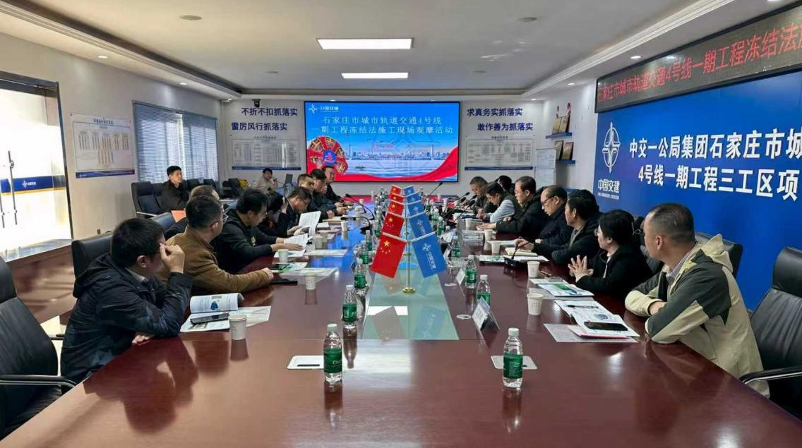 为进一步推广先进施工技术,强化工程安全质量管控,搭建行业交流平台,2025年11月20日,4号线一期工程仓丰路留村站~建设南大街站区间联络通道冻结法施工现场观摩研讨活动顺利开展。活动由市轨道集团和《地下工程冻结法支护技术标准》编制组联合组织,市轨道评估组、设计单位、监理单位、施工总承包单位等多方代表参加活动。市轨道集团总工程师张全秀,总工办、工程部、安监部相关负责人参加了活动。近年来,石家庄市深入践行生态文明理念,持续推进地下水综合治理,地下水位实现历史性持续回升,彰显了城市可持续发展的显著成效。然而,水位抬升在改善区域生态环境的同时,也对地下工程建设提出了全新挑战,带来了复杂多变的安全风险。为应对新的安全风险,填补我市地下水相关施工措施技术标准空白,《地下工程冻结法支护技术标准》适时编制完成。在此背景下,轨道交通工程作为全市规模最大、技术难度最高的地下工程,其4号线一期工程仓丰路留村站至建设南大街站区间联络通道,先行先试,成为我市首个应用冻结法施工工艺的标志性和示范性项目。观摩研讨活动中,设计和施工单位详细介绍了工程基本概况、核心施工难点及冻结法施工工艺,标准主编单位中土国际集团详细介绍了标准的编制情况。随后观摩团深入施工现场,结合设计施工方案和工程进展,对冻结法施工的冻结孔布设、制冷系统运行、远程监测等关键工序进行了逐一了解和深入交流。张全秀表示,轨道交通工程建设关乎城市发展与民生福祉,冻结法等先进施工技术的推广应用,为破解复杂地质施工难题、提升工程安全保障能力提供了有力支撑,此次观摩活动是推动技术创新共享、强化工程质量管控的重要举措。同时,张全秀还提出了应对新风险的要求,一是要研究制定“冷冻法”施工管理办法,明确关键节点条件核查及验收内容;二是要针对“冷冻法”特殊施工作业,制定专项施工技术方案、应急预案等,并要经过专家审查验收方可实施;三是要增加地面监控手段,加强施工过程监控,同时备齐备足应急抢险物资,确保突发情况下快速响应处置。此次冻结法施工观摩活动的成功举办,不仅加速了先进施工技术在我市轨道交通领域的推广应用,更是搭建了建设、设计、施工、监理、安全质量评估、规范编审修订单位等多方协同共进的交流平台,对提升工程施工安全质量与管理水平具有重要意义。