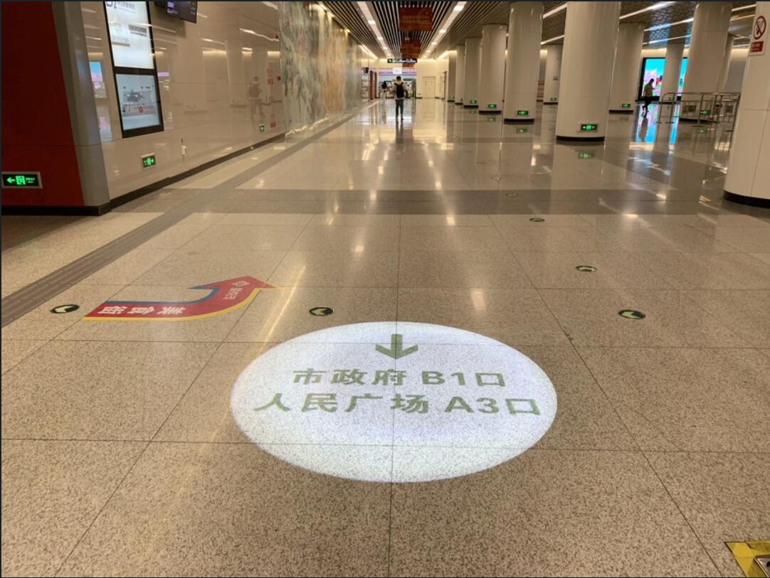 2、更加清晰的乘车指引。在站内原有导向标识的基础上,增加了导向投影,方便乘客快速到达目的地。