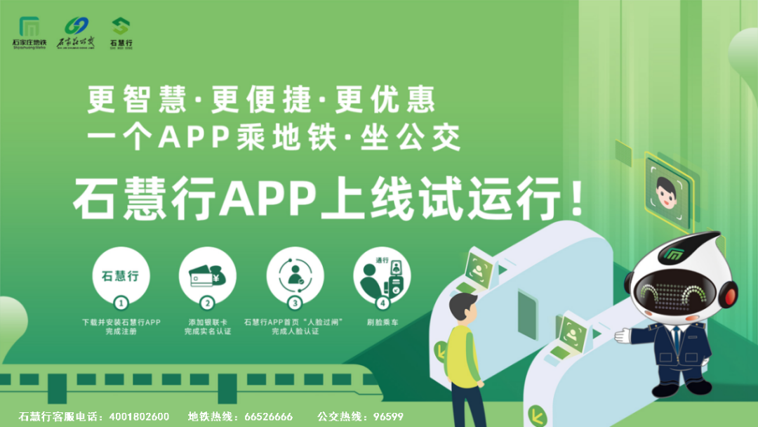 为进一步满足乘客多样化、差异化的出行需求,由石家庄市轨道交通集团有限责任公司、石家庄市公共交通集团有限责任公司与八维通科技有限公司联合推出“石慧行”APP。市民可通过“石慧行”APP在石家庄地铁1、2、3号线,石家庄公交1、6、8、10、81路进行“刷脸乘车”,实现“AI体验+智慧出行”的服务功能。