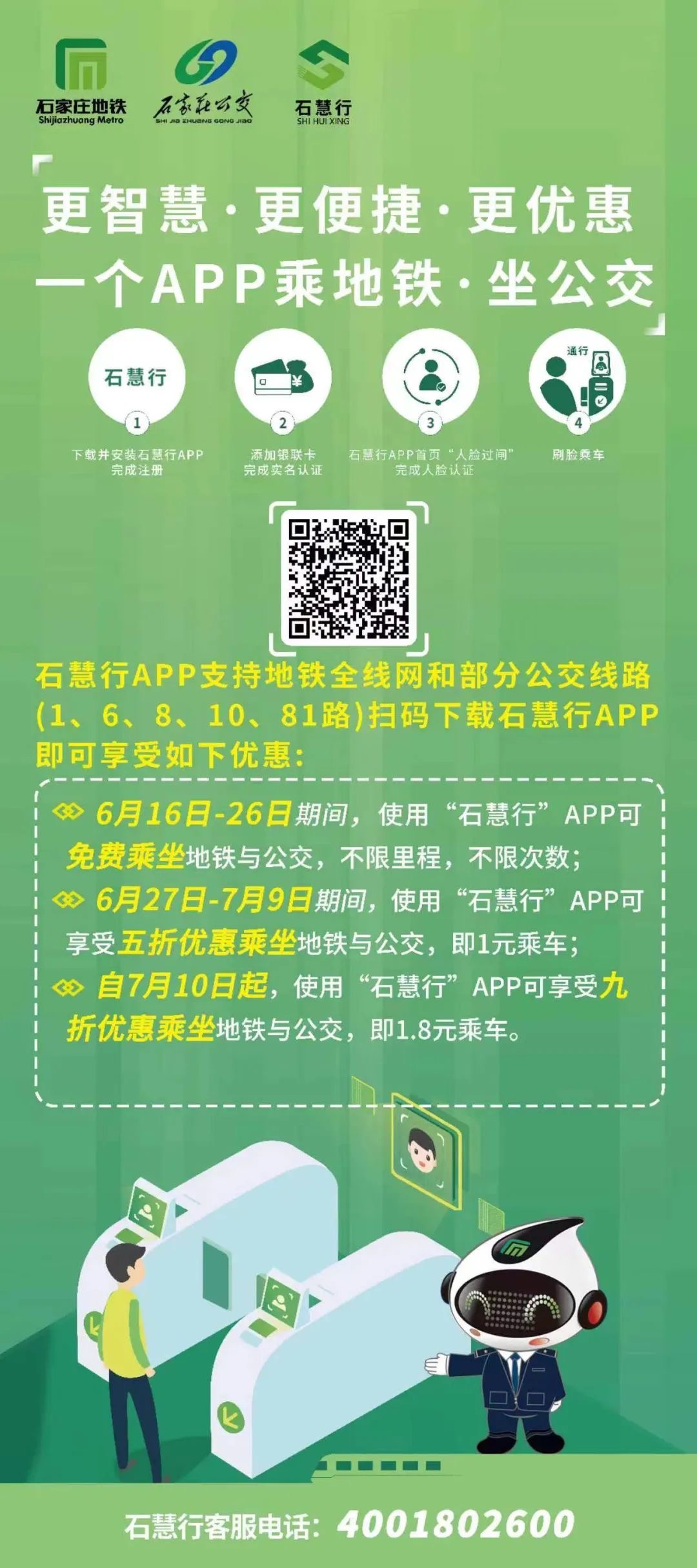 1、6月16日-26日期间,使用“石慧行”APP可免费乘坐地铁与公交,不限里程,不限次数;