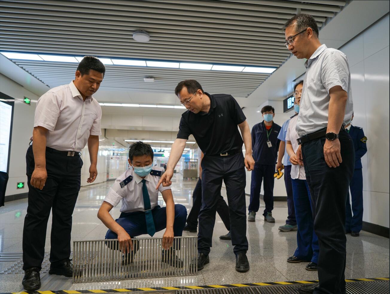 李永青一行来到地铁3号线东王站,实地查看了车站出入口防汛警戒线设置、防汛抢险物资储备、防汛设施设备运行、车站防汛预案等情况,详细了解防汛工作有关部署要求并就进一步做好防汛工作提出了指导意见。
