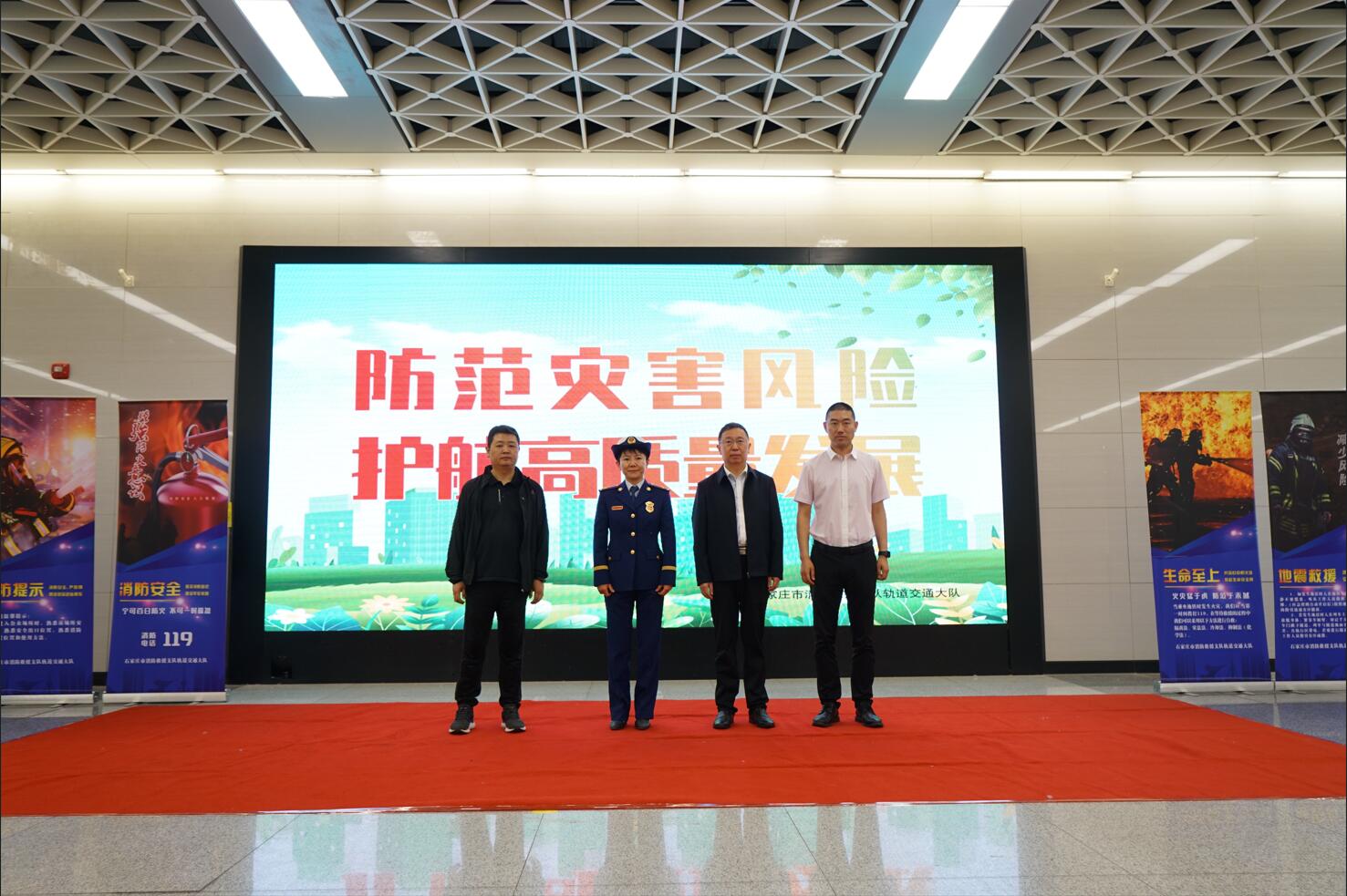 为进一步增强防灾减灾意识,广泛普及防灾减灾知识和避灾自救技能,维护轨道交通公共安全和人民生命财产安全,5月12日,石家庄市消防救援支队轨道交通大队、市轨道办及轨道集团在北国商城地铁站开展以“防范灾害风险、护航高质量发展”为主题的防灾减灾宣传活动。轨道交通消防大队大队长窦蕾、市轨道办运营管理科科长常昆、轨道集团副总经理谢志锋、运营分公司相关负责人及各部门20余名志愿者参加。