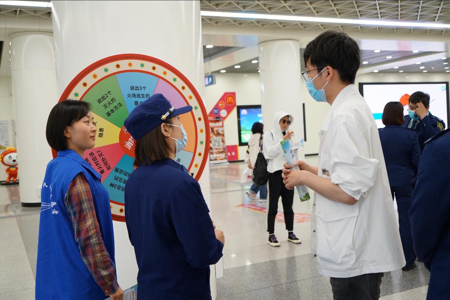 活动现场通过展播防灾减灾宣传视频的方式,呼吁广大群众提高防灾减灾意识,主动学习防灾减灾知识,积极参与防灾减灾活动,增强自防自救本领。随后,各单位宣传人员在车站站厅、站台、商业区等多个区域,发放防灾减灾宣传册,向广大市民详细介绍防灾减灾知识和技能,认真解答相关问题。同时,活动还分设了游戏互动区,参与游戏互动并回答问题,即可获得精美纪念品,寓教于乐,极大地增强了宣传的趣味性与实用性。