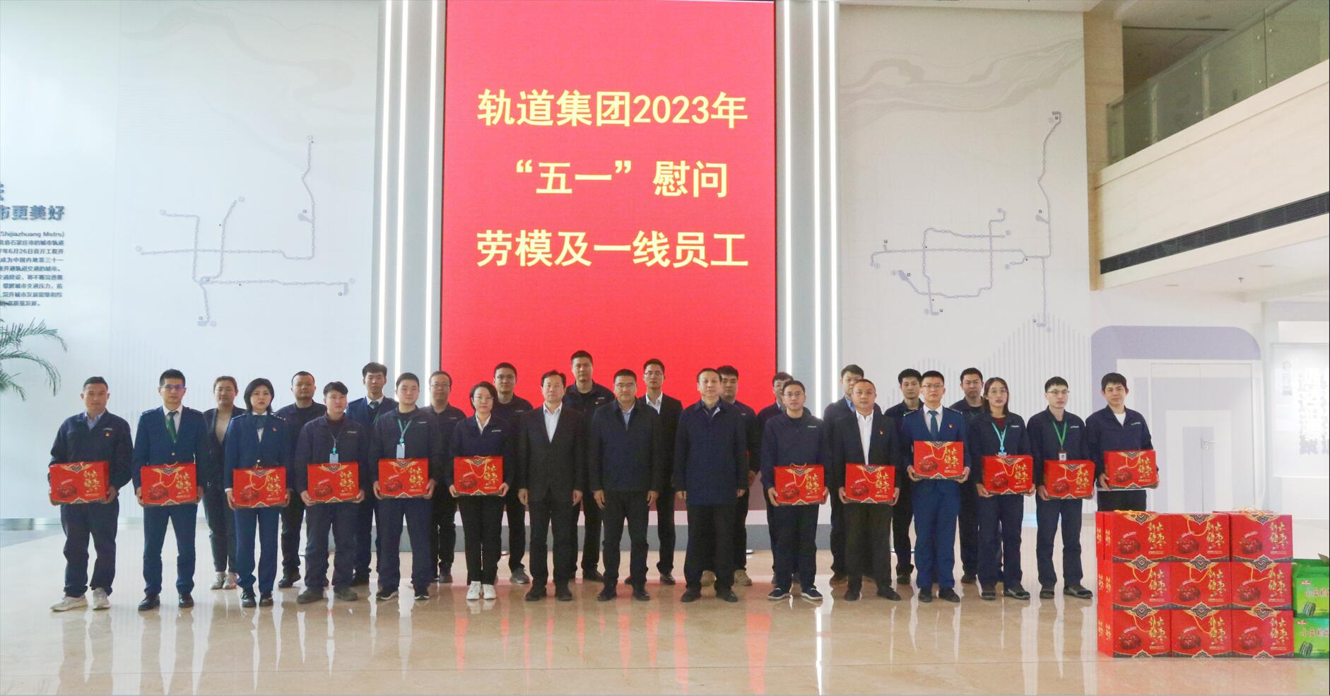 为热烈庆祝“五一”国际劳动节,4月26日下午,轨道集团工会组织开展慰问劳模及一线员工活动,现场为劳模及一线员工代表发放了慰问品,鼓励大家立足本职工作,继续弘扬新时代劳动精神、劳模精神、工匠精神,为建设现代化、国际化美丽省会城市作出新的更大贡献。交投集团副总经理、轨道集团董事长周伟,轨道集团党委副书记、总经理付朝立,轨道集团党委副书记、纪委书记狄政通等领导参加了活动。