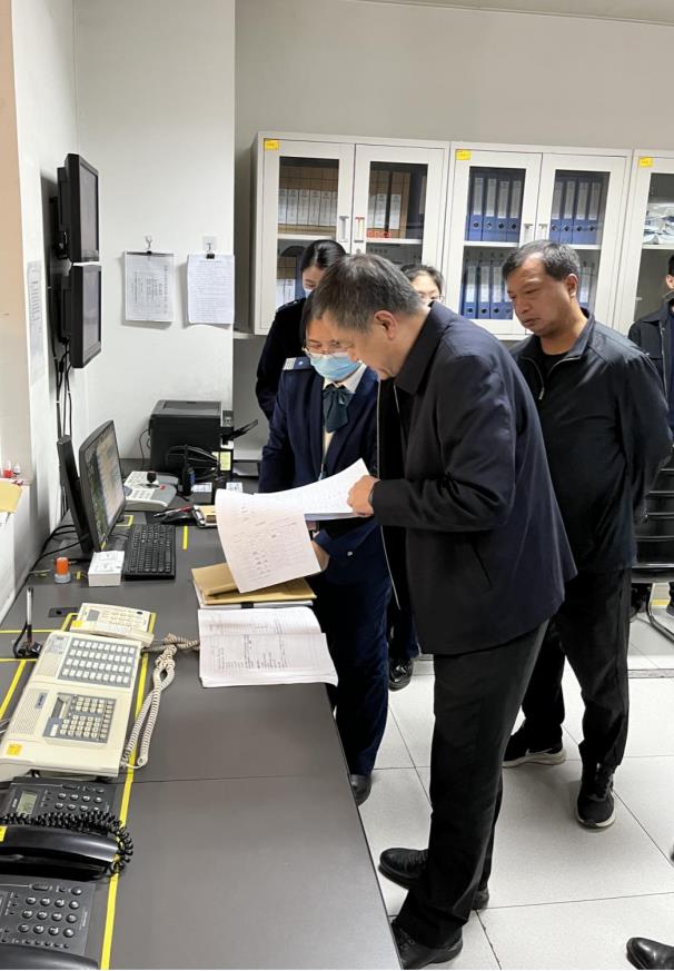 陈宝京一行在石家庄东站车控室听取了运营安全生产及消防安全专题汇报。现场检查了安检安保、反恐防爆、消防技防等工作开展情况;查阅了综合监控蓄电池室、消防泵房等房间的设备设施运行情况;询问了与高铁站接驳连廊区域的安全生产责任落实情况。