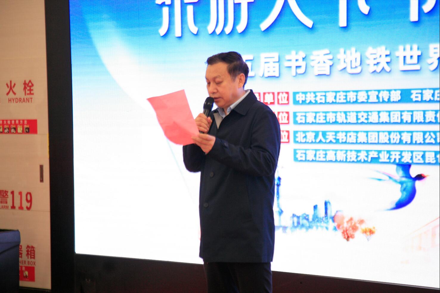 山河春暖四月天,正是读书好时节。为打造全民阅读新风尚,营造浓厚的“爱读书、读好书”氛围,2023年4月23日下午,在中共市委宣传部和市文旅局的指导下,石家庄市轨道交通集团有限责任公司和石家庄市图书馆共同主办的“乘游天下,阅览古今”第五届书香地铁世界读书日活动启动仪式,在石家庄地铁北国商城站举行。石家庄市轨道集团党委副书记、纪委书记、监事会主席狄政通 、石家庄市轨道集团运营分公司党委书记、经理王龙、石家庄市图书馆馆长于少华等领导莅临现场。