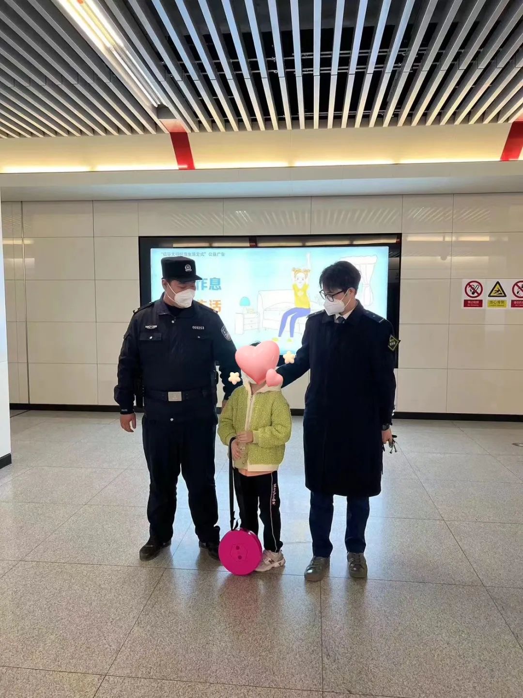 在等待家长的过程中,站务员李鹤洋、王博和轨道公安李扬帆共同陪伴着小朋友,陪她聊天,逗她开心,给予小朋友极大的安全感。17:49,家长返回到留村站,看到孩子开心的笑容,悬着的心才放了下来,并对车站工作人员的暖心帮助表示十分感谢。