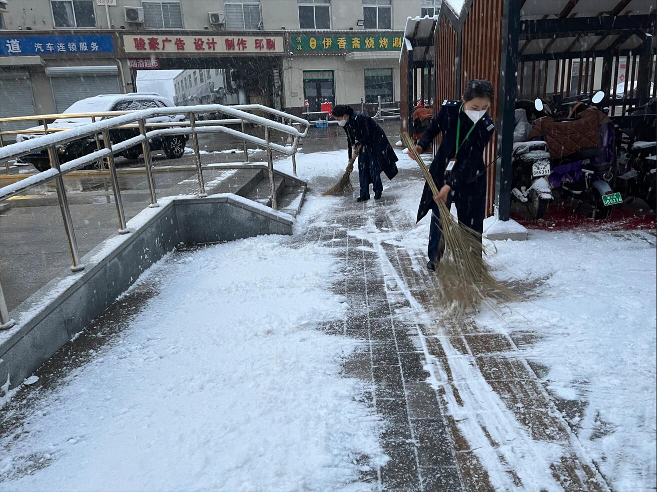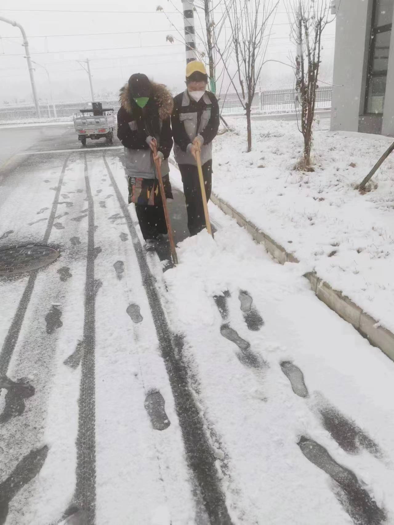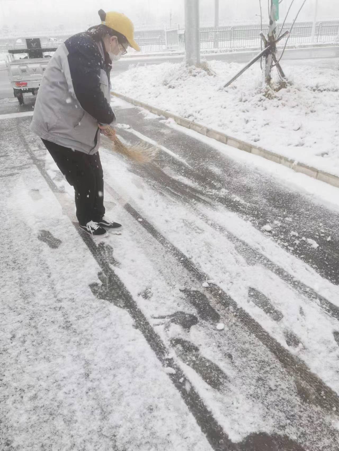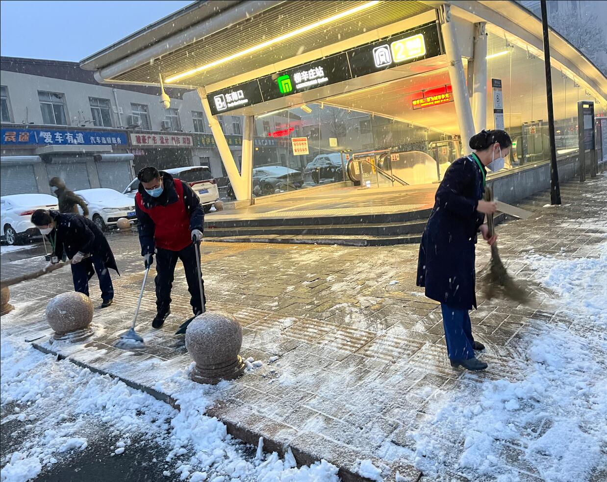 北乐乡场段积极响应低温天气预警,按照极寒天气设备保障方案要求,第一时间安排保洁进行现场除雪清扫工作,加强降温和雨雪天气防范,做好各项运营安全措施,保障场段工作正常运转。