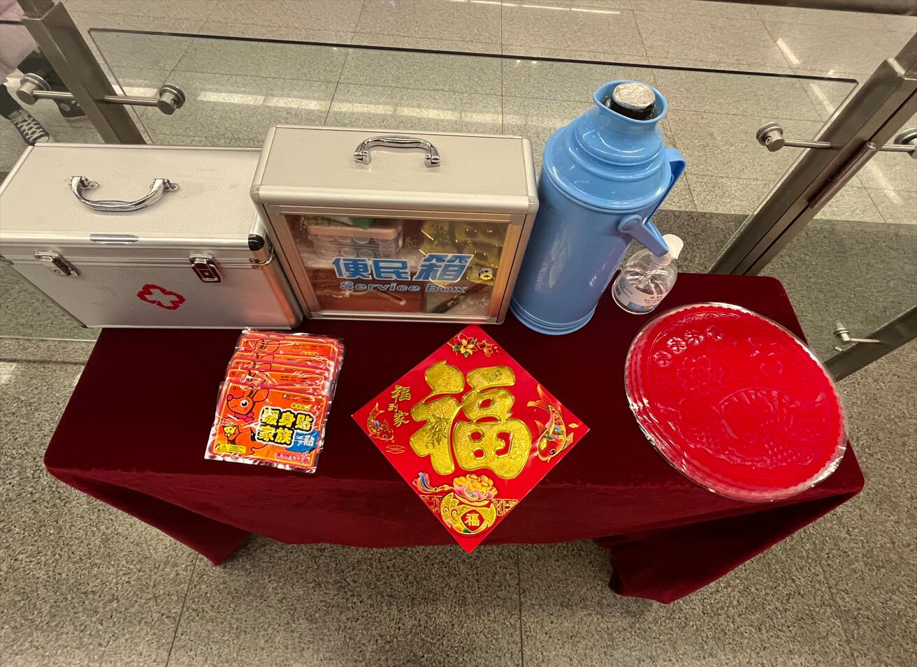 活动期间每日10:00-11:00,爱心服务台将提供“福”字、窗花及暖贴,有需要的乘客可前往领取,数量有限,先到先得哦!