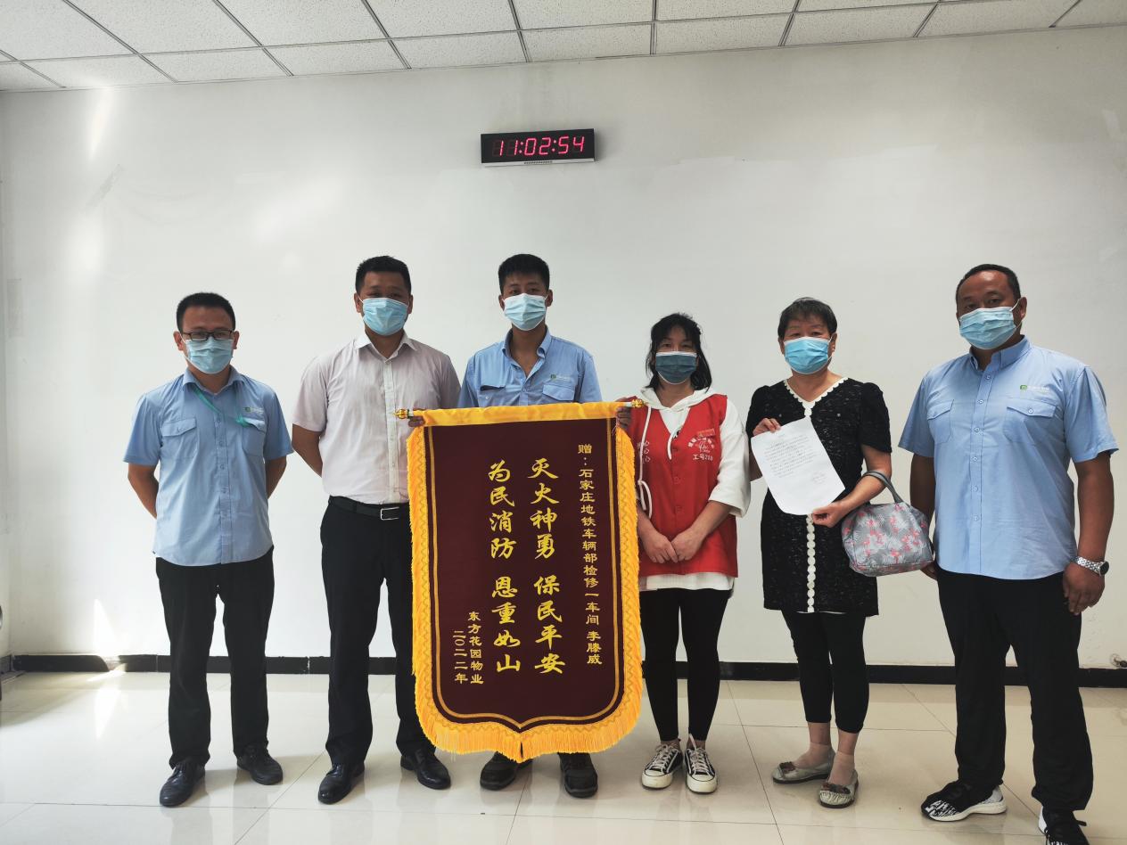 “如果火势蔓延了,后果我真是想都不敢想啊!真的太谢谢你了!”2022年9月21日,裕华区东文社区居委会工作人员专程前往石家庄地铁西兆通车辆段,向车辆部检修一车间的李滕威送上了一封感谢信和写着“天火神勇,保民平安,为民消防,恩重于山”的锦旗,并拉着李滕威的手连声道谢。