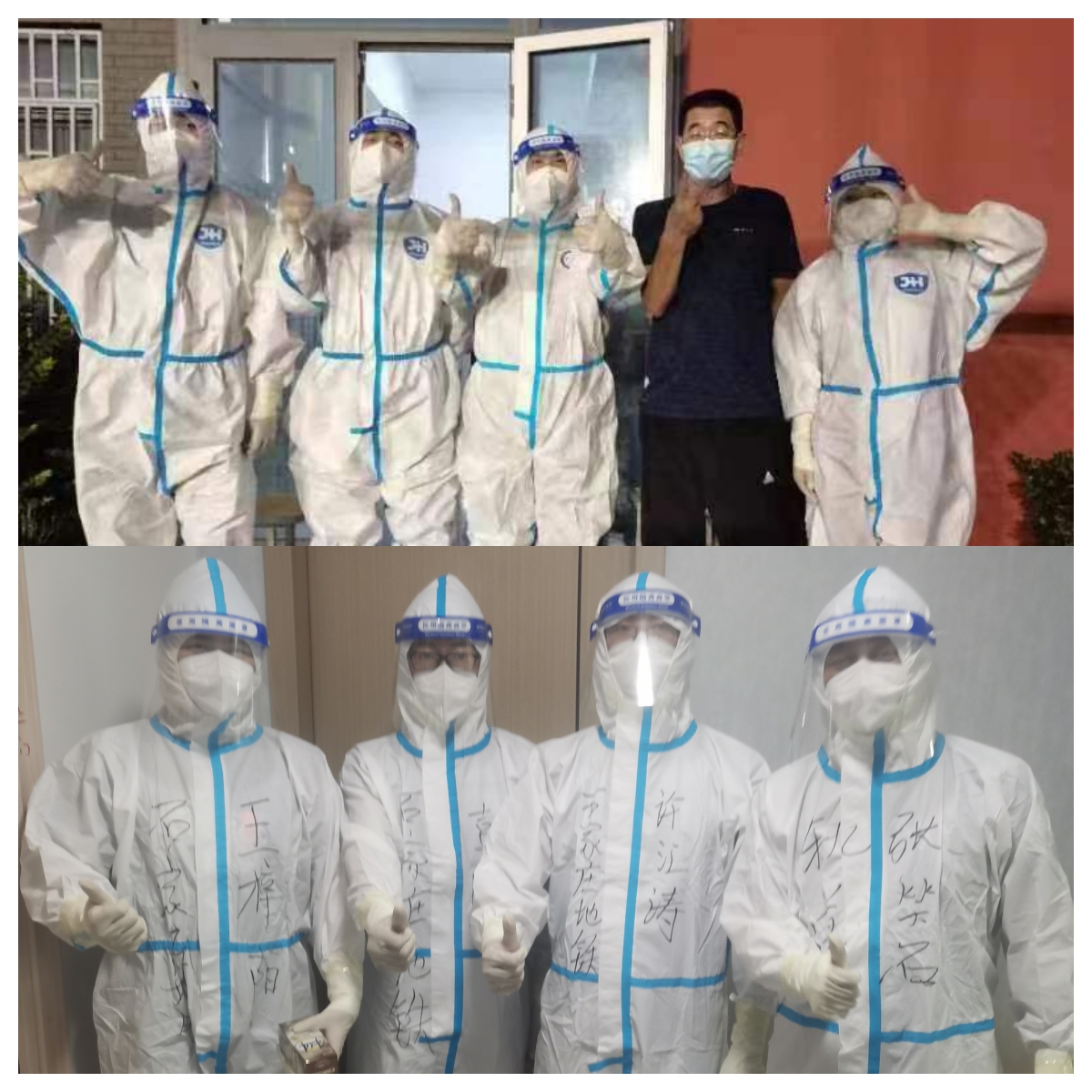 晚间,点长一声隔离人员很快要到,消杀组李存才、李子学、韩玉龙奋勇当前,快速穿上防护服,冲锋在最前面。凌晨1点,第一个隔离人员抵达,期间消杀组人员的衣物早就浸湿,在高温缺水的情况下一直在坚持,直到凌晨3点40左右才接收完毕,从等待接收隔离人员到完成隔离人员安置工作,前后共计8个多小时。