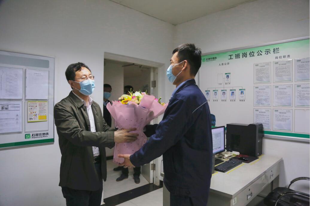 勤劳成就伟业,汗水铸就辉煌。为热烈庆祝“五一”国际劳动节,大力弘扬新时代劳动精神、劳模精神、工匠精神,充分发挥劳动模范和先进人物的示范引领作用,更好地激发广大职工的劳动热情和创造活力,4月28日上午,市轨道集团工会分别在西兆通车辆段和洨河大道站举行了“鲜花送模范”活动。