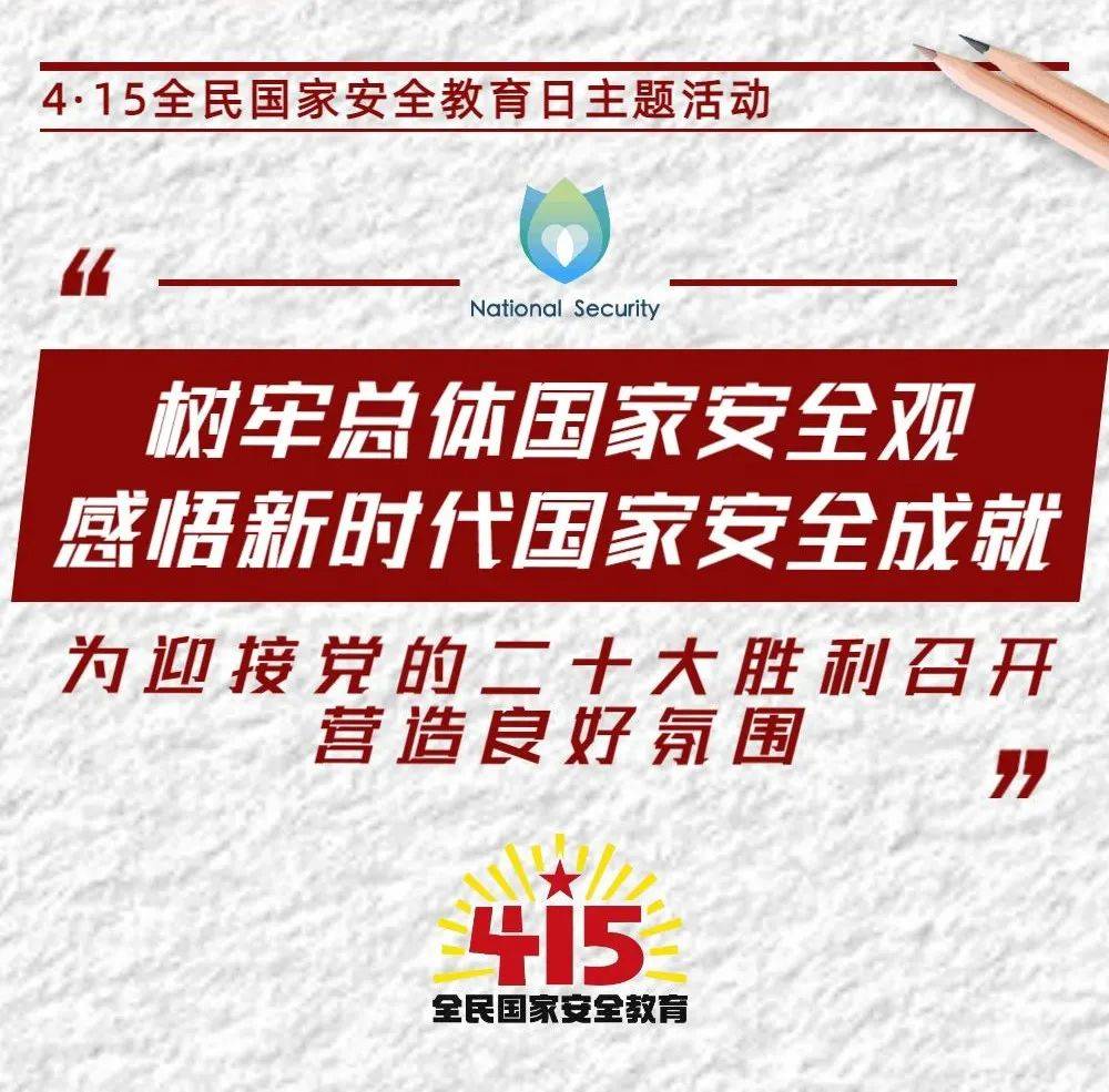 今年4月15日是《中华人民共和国国家安全法》颁布实施以来第七个全民国家安全教育日。今年的活动主题是“树牢总体国家安全观,感悟新时代国家安全成就,为迎接党的二十大胜利召开营造良好氛围”。