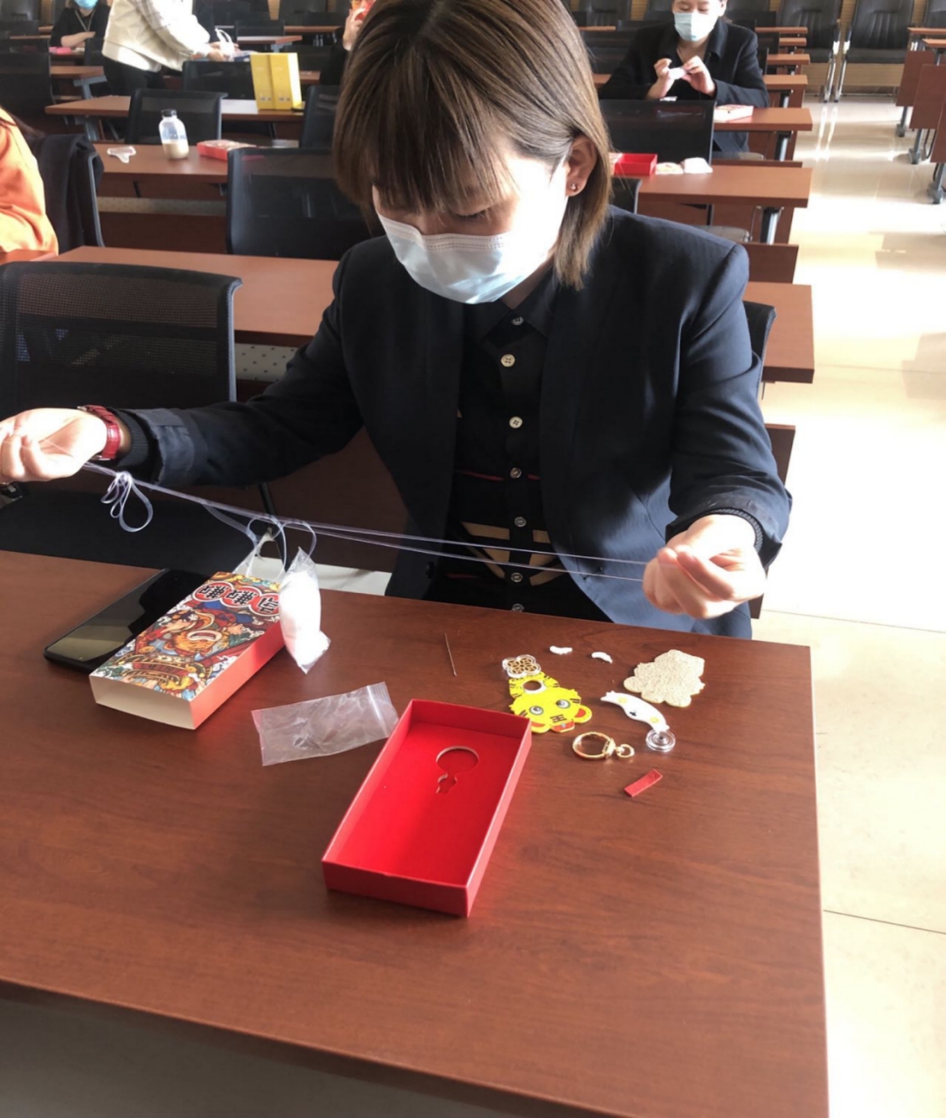 首先由专业老师给大家讲解制作钥匙扣的步骤,老师一边讲解一边拿着制作材料进行展示,让大家更了解其制作过程。随后给每个人分发了制作材料,从缝制老虎图案、填充到整体缝合,大家都在有条不紊的制作着,现场的男职工做起手工跟女职工不分上下,大家相互请教,互相帮忙,活动氛围十分融洽,最后,在老师的耐心指导和大家的不懈努力下,一个个精美的老虎钥匙扣制作完成啦。