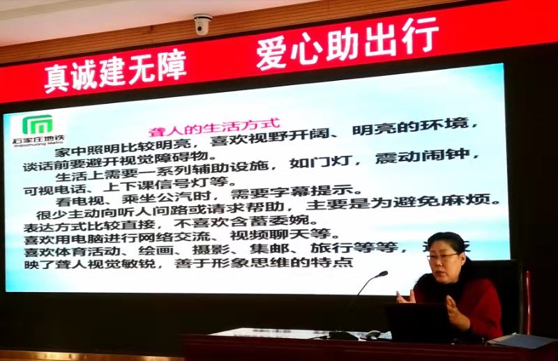 为进一步弘扬中华民族扶弱助残的传统美德,营造温馨、关爱、帮助残疾人的社会氛围,石家庄地铁积极履行社会责任,积极开展助残活动,开展志愿培训,提升运营服务水平,倡导市民乘客扶残助残。