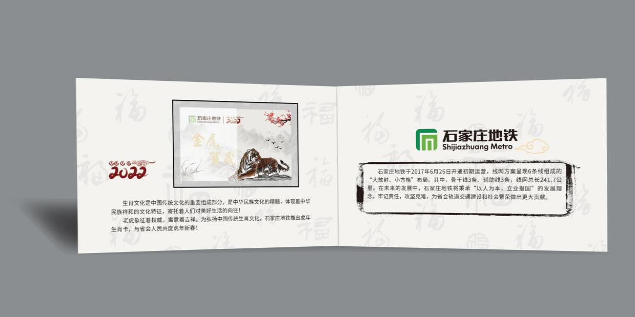 人间喜庆康平世,虎岁承欢幸福春!为弘扬中华传统生肖文化,喜迎壬寅虎年新春佳节的到来,石家庄地铁将于2022年1月1日,限量发行2022年“金虎贺岁”地铁生肖纪念册,与省会人民共度虎年新春!