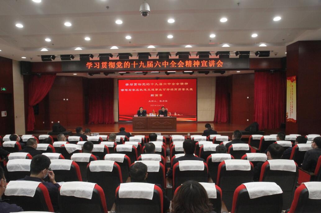 为深入学习宣传贯彻党的十九届六中全会精神,切实把集团公司各级党组织和广大党员干部群众的思想和行动高度统一到全会精神上来,迅速掀起学习宣传热潮,按照交投集团党委统一部署,12月17日,交投集团党委书记、董事长、宣讲团团长张占宗赴轨道集团围绕“深入学习贯彻党的十九届六中全会精神,谱写石家庄轨道交通事业可持续高质量发展新篇章”进行了专题宣讲。轨道集团党委副书记、总经理付朝立主持宣讲会,轨道集团领导班子成员,中层以上干部、党支部书记及党员代表参加了宣讲会。