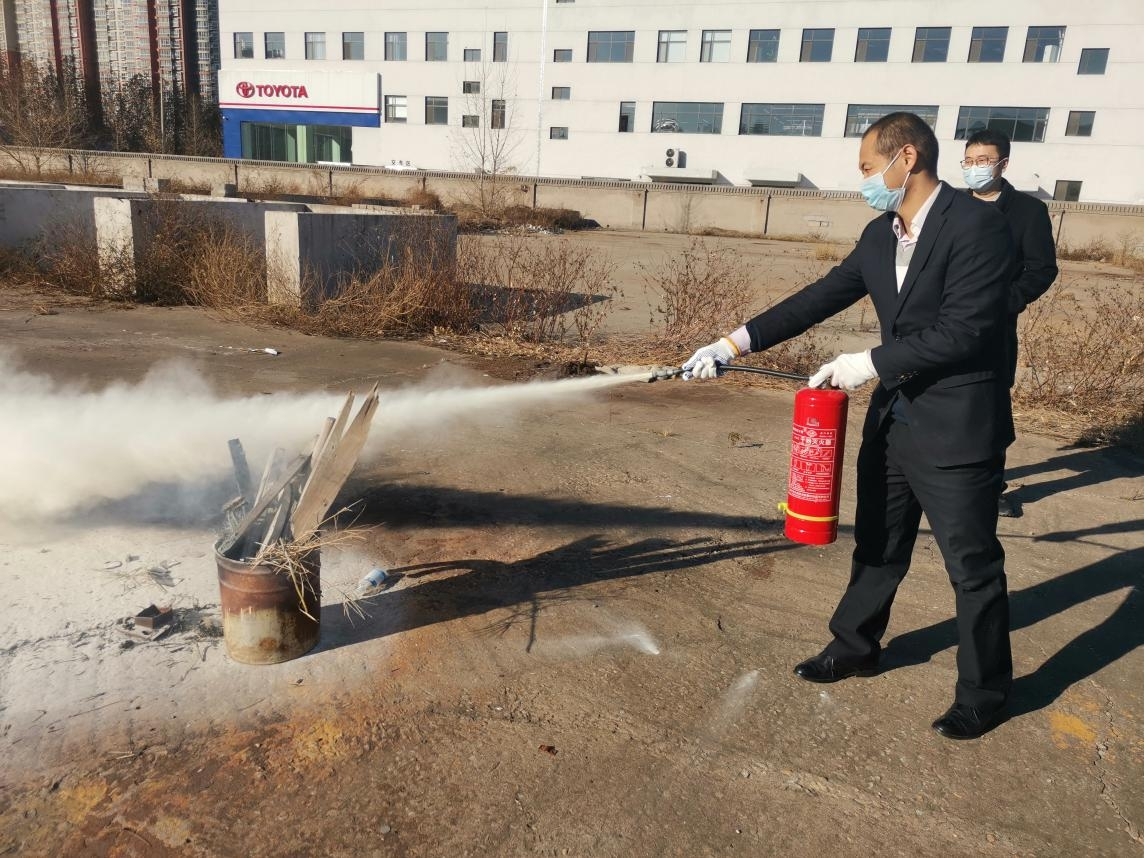 消防器材实操演练。11月30日重点组织部门人员在集团公司南广场开展消防栓、手持干粉灭火器、推车移动式高压细水雾灭火器的实操演练,确保全员能够真正会操作、能操作各类常用灭火设备,及时扑灭初期火灾,减少火灾损失。