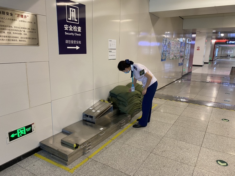 三、落实防汛应急物资近4万件。石家庄地铁全面梳理了防汛应急物资,主要为车站、车辆基地、主变电所等配备了防汛沙袋、水泵、吸水膨胀袋、防淹挡板等共38997件防汛物资。在汛期前已将上万袋防汛沙袋运送至各车站,各车站的水泵等设备也早已就位。另外,石家庄地铁各站均配有高550毫米的防淹挡板,水量大时,在防淹挡板后面再加上沙袋,全力保障车站安全。