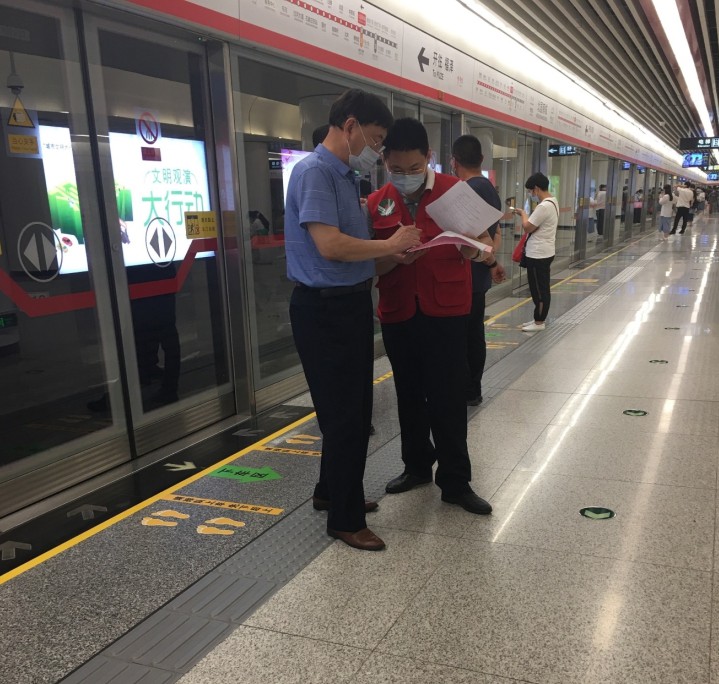 为了不断提升石家庄地铁运营服务水平,提供更优质的服务,志愿者们在与乘客面对面的交流过程中,诚挚地邀请乘客填写《2021年上半年乘客满意度调查问卷》,广泛地收集乘客对地铁运营服务各方面的意见和建议,为石家庄市民提供更加优质贴心的服务。