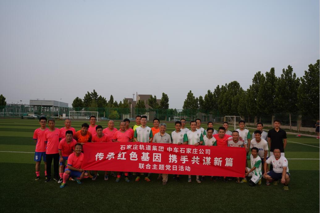 6月30日,石家庄中车轨道交通装备有限公司总经理许韵武,党支部书记、副总经理张铁明,营销服务部部长李芮带领中车石家庄足球队队员来到石家庄市轨道集团运营分公司足球场,与石家庄地铁足球队进行了一场友谊赛。整场比赛精彩纷呈,双方在你来我往的攻防中展示着奋勇争先的精神和激情昂扬的斗志。