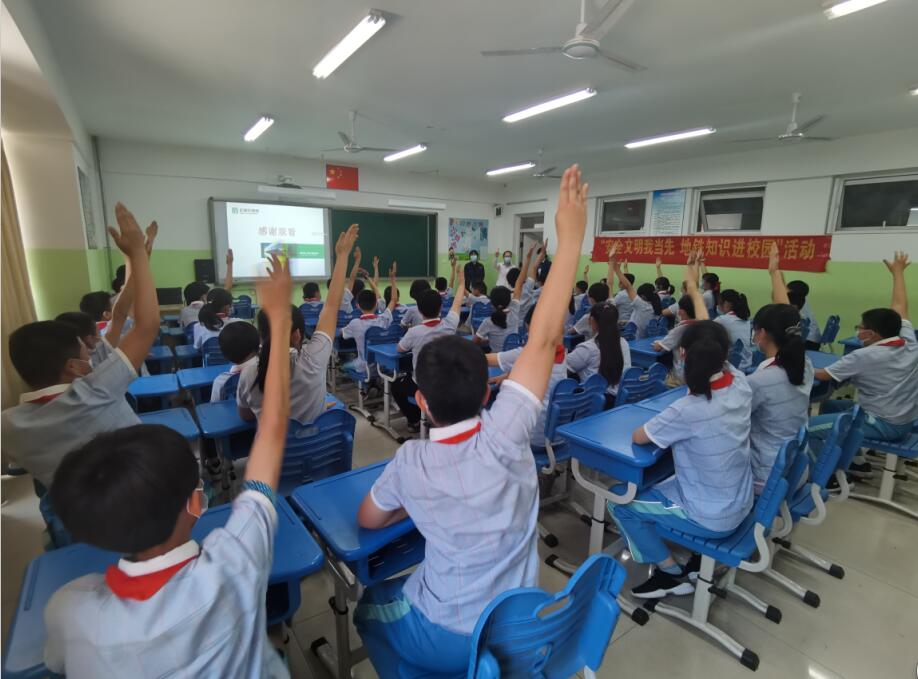 课堂上,地铁工作人员首先利用ppt将车站内的场景再现,列举了正确与错误的乘车行为,让同学们在对比中牢固掌握正确的安全文明乘车知识。同时,还向他们讲解了学生卡办理及票价优惠政策,希望同学们积极办理学生卡享受5折乘车优惠,在生活中多多选择地铁这一绿色环保的出行方式。活动现场气氛活跃,同学们踊跃举手发言,积极回答地铁工作人员提出的安全文明乘车的相关问题,本次地铁知识课取得了良好的效果。
