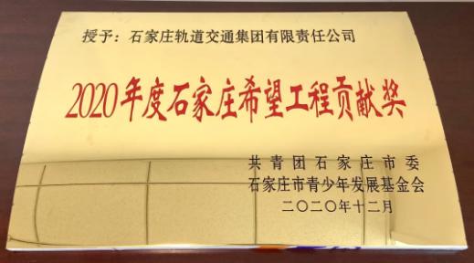 市轨道集团荣获“2020年度石家庄希望工程贡献奖”