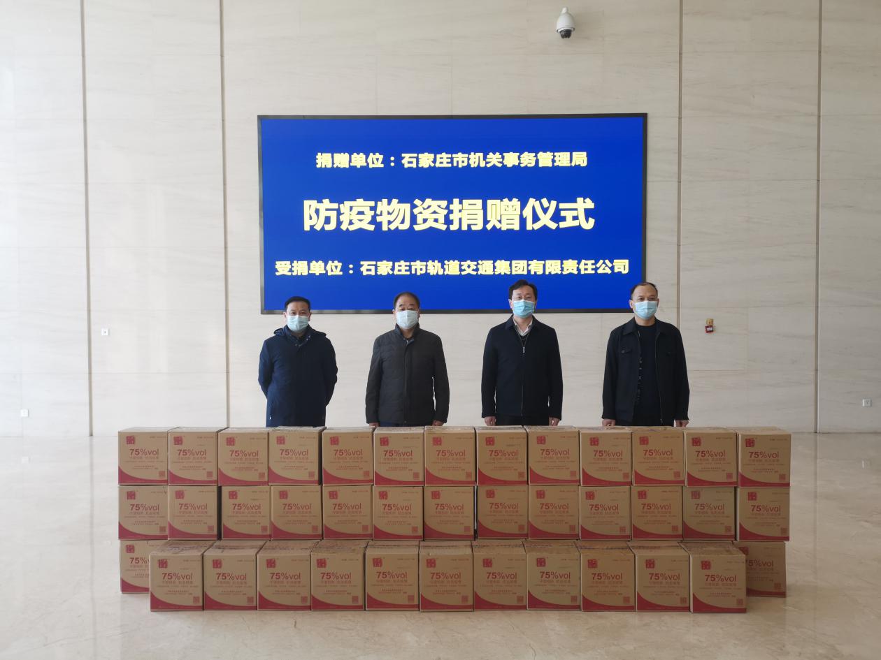 1月30日上午,石家庄市机关事务管理局防疫物资捐赠仪式在石家庄市轨道集团办公大楼举行。
