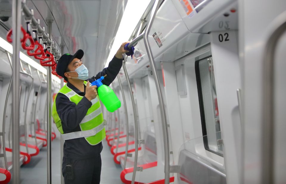 为了恢复运营时给广大乘客提供安全舒适的乘车环境,石家庄地铁提前谋划,严格落实疫情防控工作各项要求,做好人员和车辆准备,细致检查系统设备,认真开展消毒消杀工作。