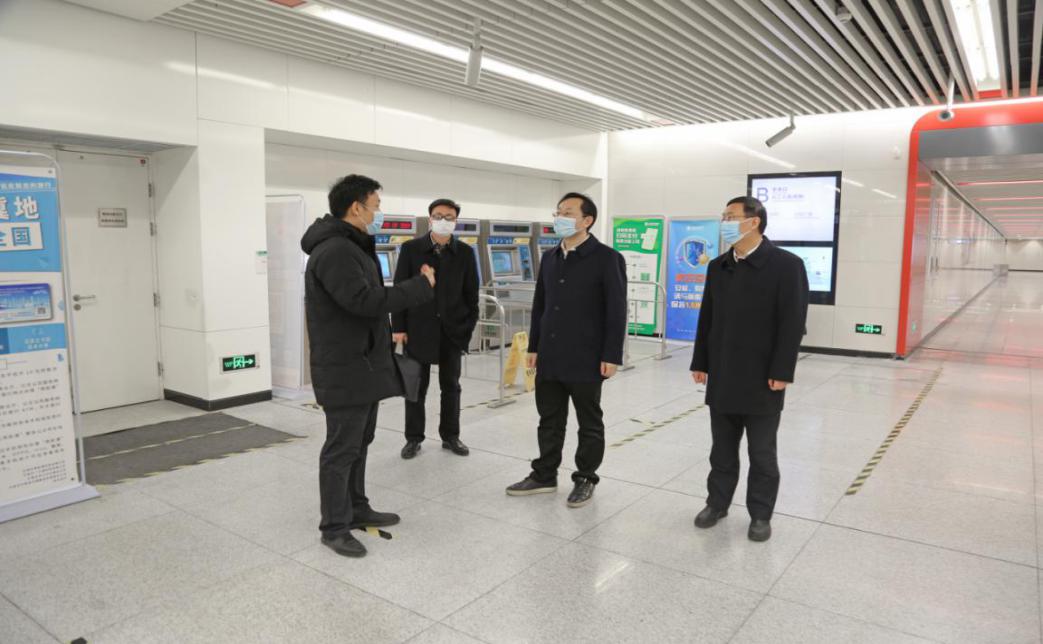 1月29日,市轨道集团副总经理付朝立、运营分公司经理谢志锋一行对车站疫情防控、消毒消杀及设备安全等开展全方位的检查。