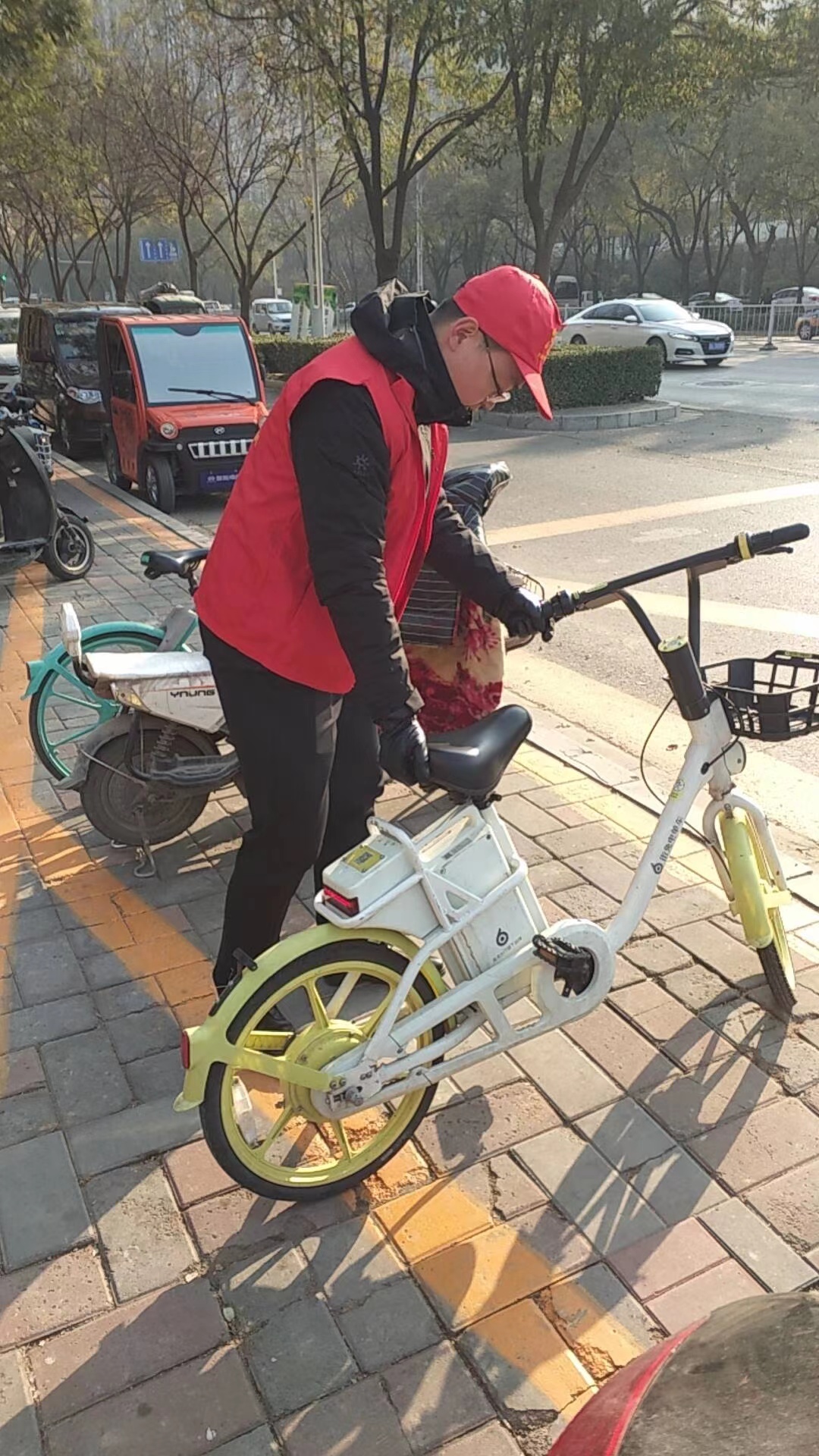 冬日早上天气分外寒冷,但党员志愿者们参加活动的热情却很高涨,他们统一穿着志愿者服装,不怕苦、不怕累,自带工具捡拾路面垃圾;整理道路两边乱停乱放的共享单车;协助进行交通文明督导,引导市民遵守交通规则。