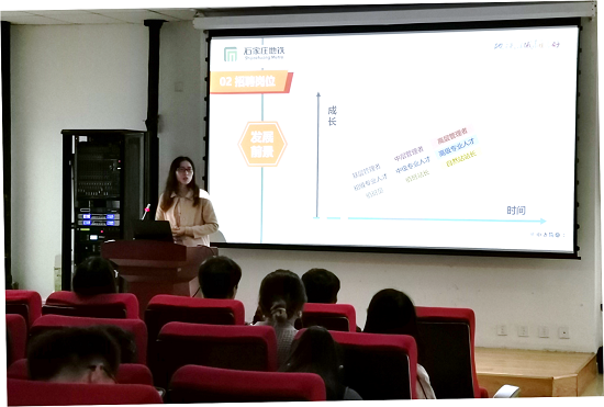 在宣讲会上,梁立肖副部长、王红亮主任从公司概况、企业文化、薪酬福利、职业发展、招聘计划及流程等方面对石家庄地铁及本次招聘工作进行了详细介绍。随后,在现场问答环节就毕业生所关心的就业问题深入交流,求职学子发言踊跃,氛围热烈,取得良好的宣讲效果。