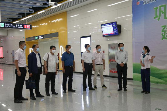为贯彻落实轨道办、轨道公司加强安全管理,时刻保持警惕,加强应急演练,提升应急能力,确保运营安全的总体要求,2020年9月23日,市轨道公司运营分公司开展了站厅大屏着火及车站出入口水淹倒灌专项应急演练。市轨道办党委书记、主任陈宝京,轨道公司党委书记、董事长郭少旭,轨道办副主任张龙,轨道公司副总经理、运营分公司经理付朝立等领导到北国商城站共同观摩指导了站厅大屏着火及车站出入口水淹倒灌演练。
