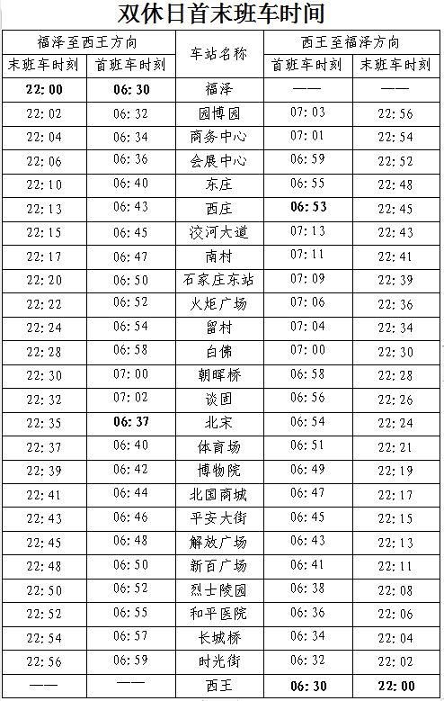 为满足广大市民出行需求,自2020年3月16日起,石家庄地铁1号线二期车站(西庄站-福泽站)恢复正常运营。