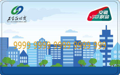 当前,市公交公司发行的交通一卡通卡为:公交交通一卡通卡以及石惠卡(下附卡面样式),版面设计根据不同时期或有更新,但交通一卡通卡版面有统一的“石家庄公交”和“交通联合”标志,石惠卡有“石家庄市总工会”字样。