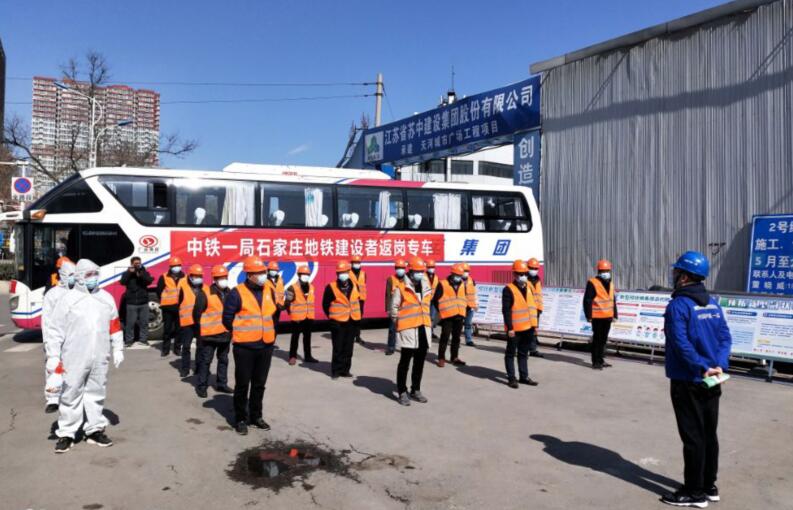 13时许,经过一天的长途跋涉,行程近1300公里,18名石家庄地铁建设者从四川广元出发,乘坐中国中铁一局返岗专车安全抵达石家庄地铁2号线运河桥站。大家进行体温测试后,在现场小广场进行安全培训,之后回到住地进行集中隔离。据地铁2号线07标中铁一局项目部负责人王荣富介绍,为了在做好疫情防控的同时快速打开复工局面,项目部一方面积极与劳务队负责人进行沟通,遴选确定返岗人员,办理包车相关事宜;另一方面提前为劳务工做好住宿和餐食的各项准备工作,这才确保了劳务工能够安全快速返岗。项目部近期将积极跟进复工手续批复,在确保做好疫情防控的情况下,合理有序做好劳务工的返岗、物资材料的储备、机械设备检修等准备工作,确保能够实现“复工即大干”。