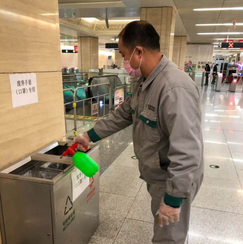 运营期间,车站每两小时对安检设备、废弃口罩(手套)专用垃圾桶进行消毒,在运营结束后及运营开始前对车站卫生间、电扶梯、自动售票机、闸机、安检机等关键部位进行全方位的消杀。全线各站大、小通风系统运营时间全部开启,通风设置为全新风模式,加大公共区的新风引入,确保地铁车站的通风换气,提高空气清新度。