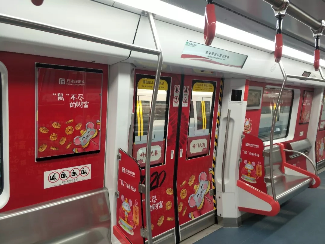 为迎接庚子鼠年的到来,烘托春节的喜庆氛围,石家庄市轨道交通有限责任公司特别于春节前夕精心打造了2020春节主题列车,并于1月16日正式在石家庄地铁1号线上线运营。
