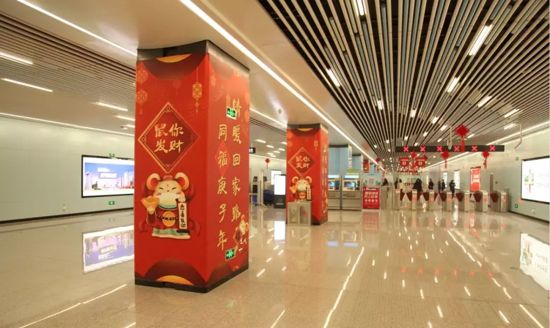 车站的客服中心、车站控制室、进出站闸机、屏蔽门、玻璃围挡等对外窗口和公共区域,春联、窗花、灯笼、中国结等春节装饰物品齐上阵,把车站布置成幸福“家”,打造浓浓年滋味,呈现了亮眼又温馨的画面,让进出地铁的旅客感受到喜悦欢欣的浓浓年味。