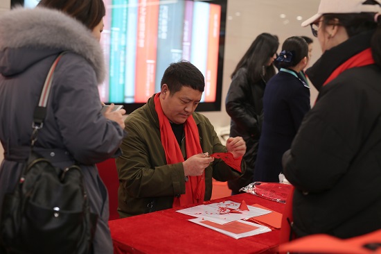 本次活动肖建科主席等7位知名书法家、全国十佳剪纸能手赵成龙老师为大家联合奉上了一场精彩绝伦的新春文化盛宴。红幅铺展,毛毫浸墨,拂袖挥笔,笔锋婉转,一副副对联让广大市民领略到中华传统文化的魅力。 活动现场,市民们纷纷排起长队,争相领取书法家现场书写的福字春联,同时剪纸艺术家赵成龙老师也为市民免费奉送了精美的剪纸作品,将吉祥如意送入千家万户。