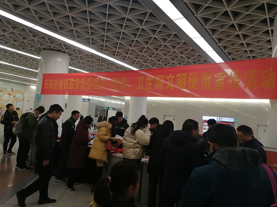 为贯彻落实“不忘初心、牢记使命”主题教育活动要求,持续开展“双问计”活动,围绕“为民服务解难题、不断提升运营服务品质”,运营分公司于12月28日下午在北国商城站开展安全乘梯、文明如厕宣传活动,与乘客面对面交流,得到了广大市民的积极响应和一致好评。