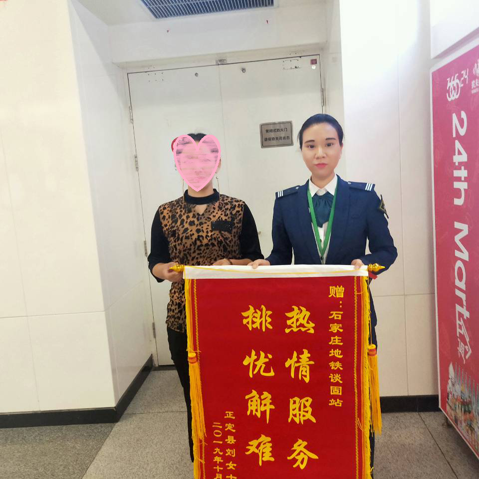 2019年10月8日,地铁谈固站收到乘客刘女士送来的印有“热情服务,排忧解难”的锦旗一面。