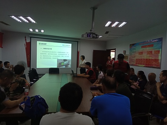 8月3日上午,石家庄地铁调度部“青年文明号”及青年志愿者服务队来到高新区湘江道的卓达·星辰花园小区物业办公室楼的社区活动中心。地铁青年志愿者服务队用通俗易懂的语言向老年人宣讲了地铁知识,包含专用电梯、爱心座椅等关爱老年乘客的设备设施以及地铁对70岁以上老年乘客的票务优惠政策,讲解了OCC控制大厅的地理位置、功能定位、设备设施和人员配备情况,给星辰社区的老年人们们上了一堂生动有趣、别开生面的“地铁知识课”。 在宣讲地铁知识过程中还插入了“谈心聊天”的互动环节。在聊到OCC就在星辰花园附近时,很多老年人都纷纷询问相关情况。两个钟头志愿活动在你问我答的欢声笑语中进入尾声。