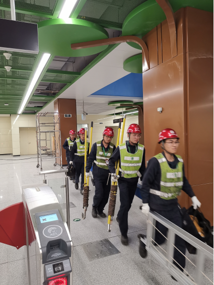 石家庄地铁1号线二期开通在即,为落实“三深化、三提升”活动,积极践行“效能革命”,能够在试运营期间有序、熟练应对突发状况,迅速组织故障应急处理能力。5月13日23时30分,由安全管理部牵头,综合维修部供电车间为主体,车务部、车辆部积极配合,在一号线二期园博园站至福泽站区间下行线开展了弓网故障应急演练。
