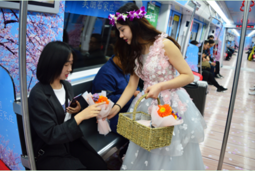 “美丽石家庄·花海列车”是由石家庄市轨道交通有限责任公司联手河北广电网络集团传媒科技有限公司、君悦传媒共同打造的一列文化公益主题列车。登上花海列车,乘客们可以邂逅浪漫的薰衣草、遇见清新的油菜花,徜徉在唯美的樱花树下,在地铁车厢感受户外的美丽春光。石家庄市轨道交通有限责任公司希望用这种方式,给大家的地铁出行带来一份轻松和愉悦,让更多人能够选择地铁,绿色出行。