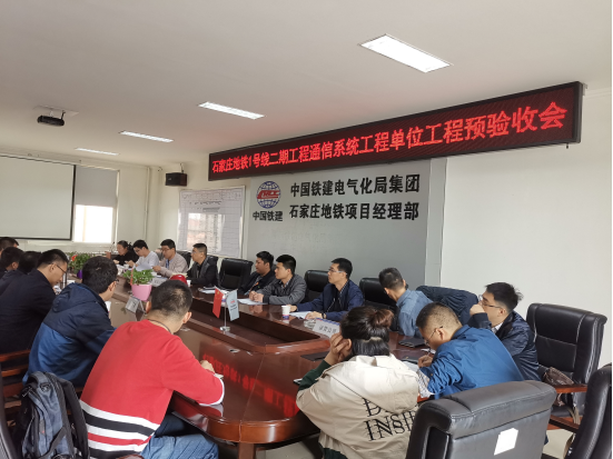 为积极落实“三深化、三提升”活动,深入开展“效能革命”,保证石家庄市轨道交通1号线二期通信系统顺利开通,4月23日在中铁建项目部,由轨道公司设备部组织,五十四所、通信各系统厂家、华铁、中铁建、运营分公司技术管理部、综合维修部通信专业人员参加了1号线二期通信系统设备安装工程预验收会议。