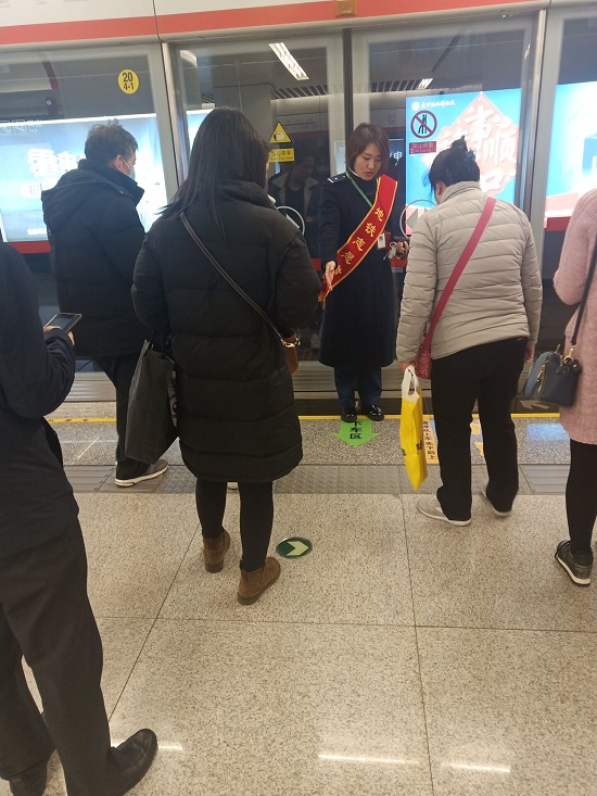 站台上出现了很多“文明使者”,他们身披“地铁志愿者”绶带,个个身姿挺拔,引导有序,对站台客流较集中区域进行疏导,指引乘客在车门两侧排队候车,在中间留出下车的通道,提高上下车效率;当车门即将关闭时,及时提醒乘客不要抢上抢下,整个站台变得井然有序。