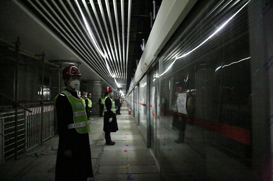 朝立副总经理一行首先来到西庄站,经临时楼梯到达站厅层,沿途听取列车调试、装修进度、人员进驻、安全管理等方面工作汇报,查看了车站控制室、设备区、站厅站台,详细了解地铁1号线二期工程调试和试运行情况,同时对进驻准备工作表示肯定,希望大家再接再厉,保质量、保节点,圆满完成试运行工作,早日实现1号线二期工程试运营。
