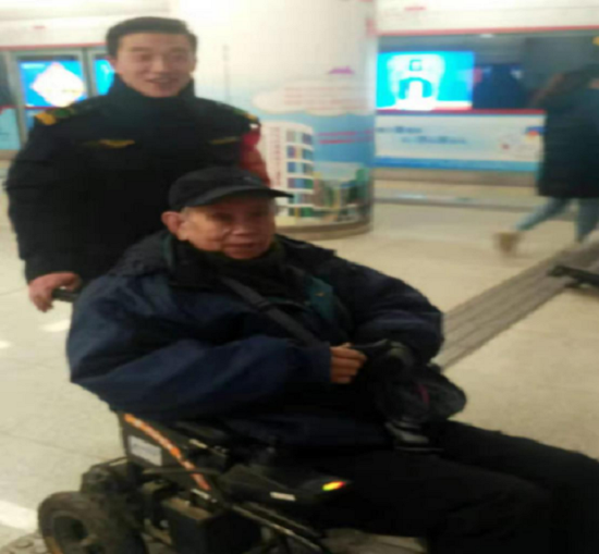 2月21日16时,地铁1号线谈固站保安班长孙晓欢在车站巡视时,发现一名坐轮椅的老人独自乘车,他主动上前询问是否需要帮助,得知老人要去新百广场站女儿家时,便护送老人到目的车站,之后,又将老人安全护送到了女儿家,与女儿见了面。