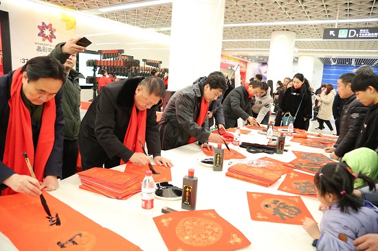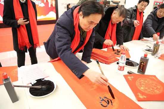 狗护千祥追日去,猪拥万福驾云来。1月31日上午10:30,由石家庄市文联、石家庄市轨道交通有限责任公司、河北省文化发展促进会礼•乐文化研究专业委员会主办,河北博衍文化产业发展有限责任公司、河北乐璇文化传播有限公司协办的“挥毫泼墨迎金猪钟磬古乐贺新年”迎新春民俗文化活动在北国商城站隆重举行。